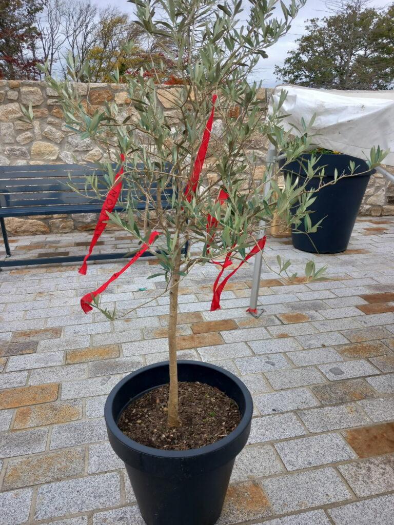 Puis, nous avons accroché sur les branches d’un olivier six rubans. Sur chaque ruban était écrit un des prénoms des six personnes accompagnées par le collectif de Chantepie.