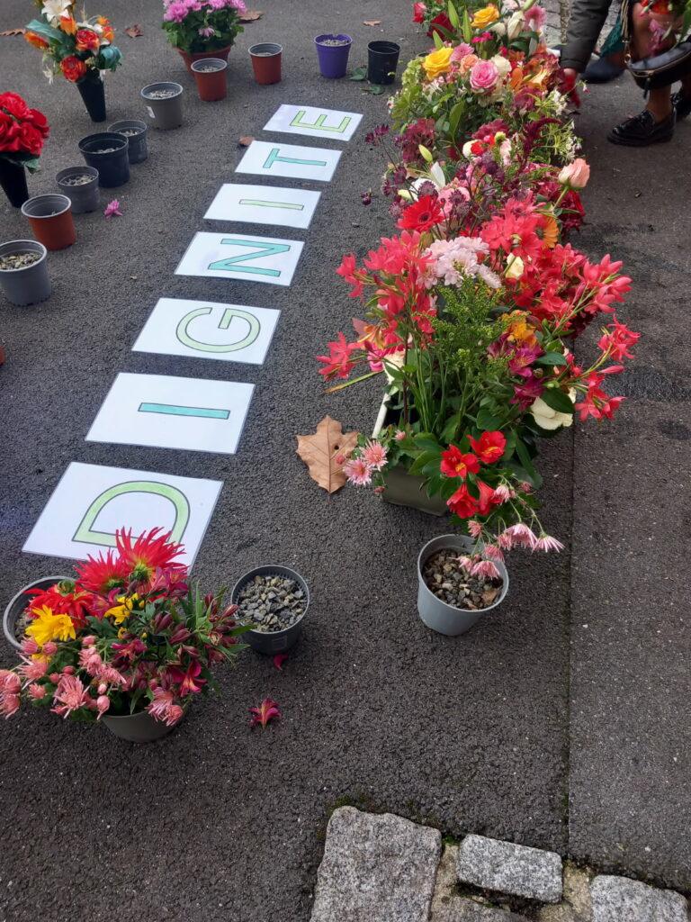 Chaque participant a reçu une bougie qui a été déposée sur un banc public où était écrit le mot « Dignité ».