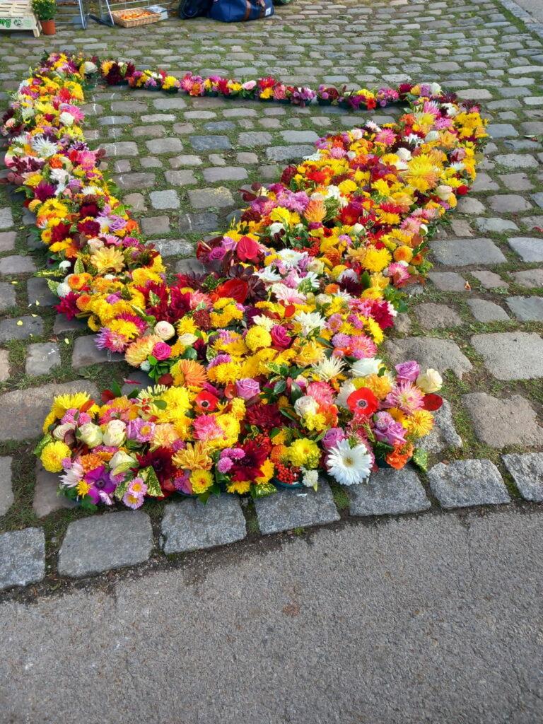 Le symbole de la harpe réalisé en ce lieu était enrichi d’une fleur posée après la lecture de 10 prénoms. Ensuite, chaque participant a déposé la composition florale qu’il avait en main sur une sépulture identifiée par une coquille saint Jacques.